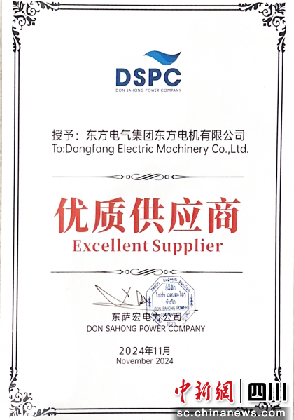 “優(yōu)質(zhì)供應(yīng)商”證書。東方電氣集團(tuán)供圖