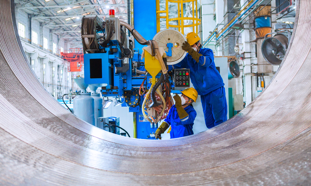 東方電氣集團工作人員在利用自動化設備焊接發電裝備鍋爐部件,產品加工完成后將被運往貴州六盤水項目現場進行組裝。該電廠投運后,預計年發電量可超58.1億千瓦時,將為區域能源結構優化提供重要支撐。