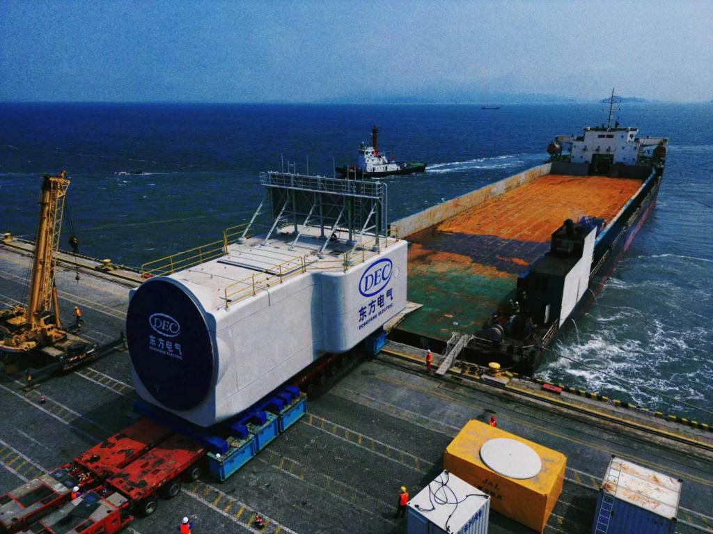 近日,由東方電氣集團研制的全球單機容量最大26兆瓦海上風電機組核心部件——153米全球最長葉片和超500噸全球最重機艙,安全抵達山東東營廣利港。