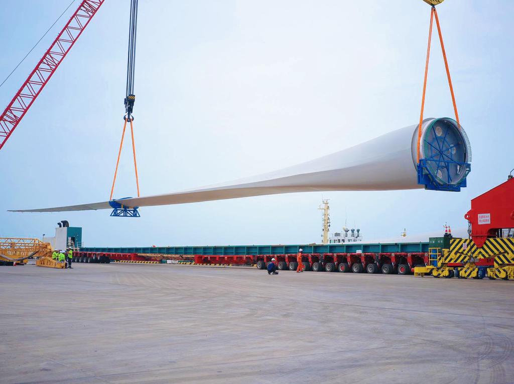該葉片運輸難度極高,從工廠到港口的運輸路線如“障礙賽”,高壓線、橋梁、急彎層層阻隔,發(fā)運團隊提前半年實地勘測,多次復勘定制“分段式護送”方案。