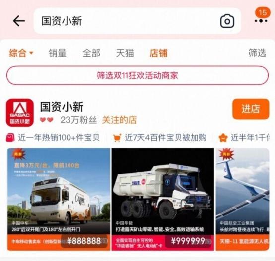 (圖:國資小新淘寶店今年雙11已上新,該店鋪已經積累了23萬粉絲)