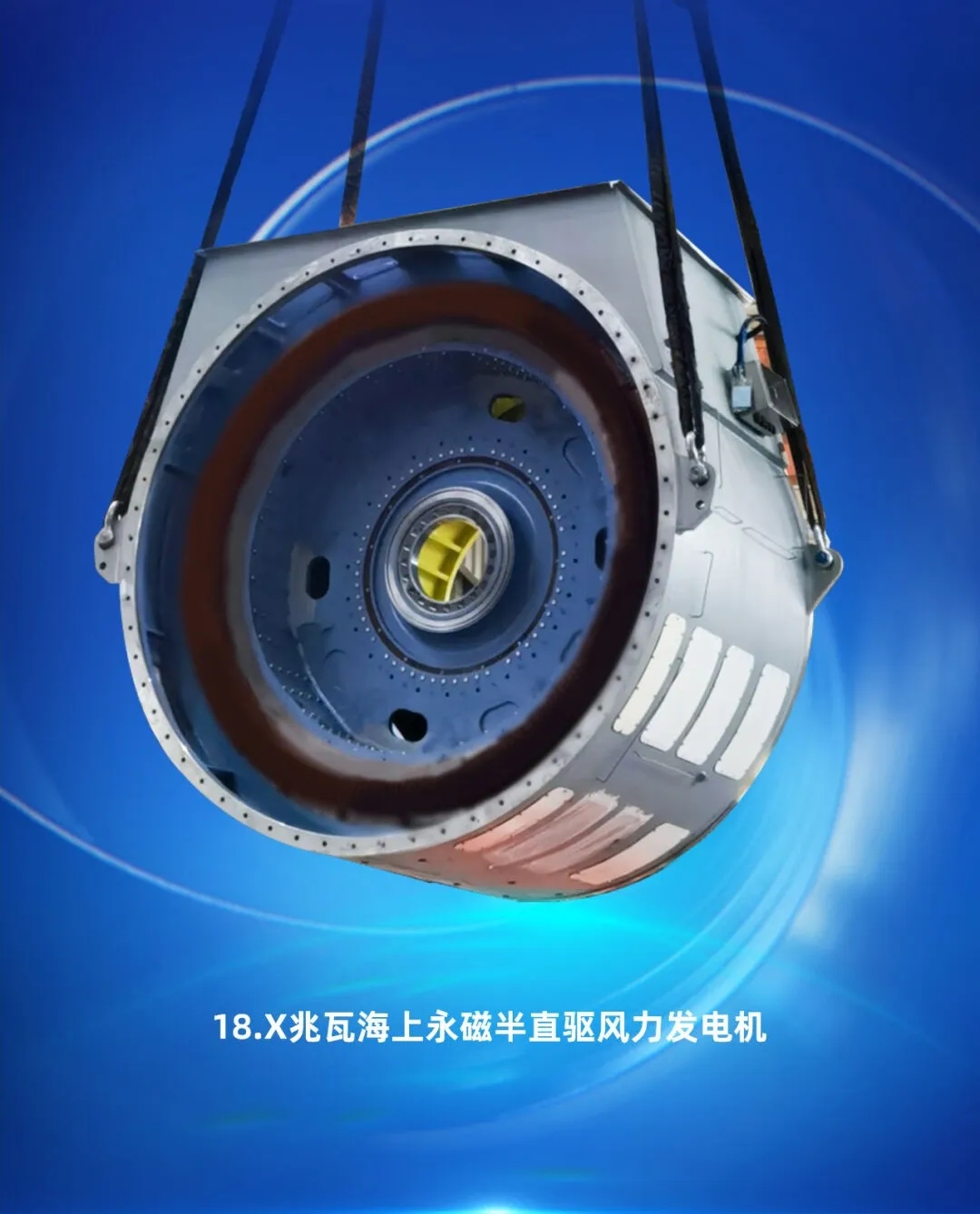 擁有完全自主知識產權的全新一代18兆瓦海上直驅風電機組,關鍵部件葉片、發電機、變流器、變壓器等完全實現了國產化,推動了整個風電產業鏈的協同發展和技術進步,該機組獲評2023年度央企十大國之重器。