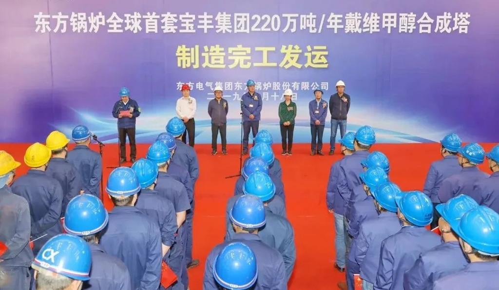 戴維甲醇合成塔的制造難度大,但其工藝技術成熟度高等優質特點,讓該產品獲得行業內的廣泛認可,成為煤制甲醇用戶的優選。為此,早在2014年,東方鍋爐便開始長達4年的攻關,著力推進戴維甲醇合成塔技術儲備和制造授權取證工作。2018年,順利承接寧夏寶豐能源集團年產220萬噸甲醇項目甲醇合成塔設備,首次實現戴維甲醇合成塔國產化。