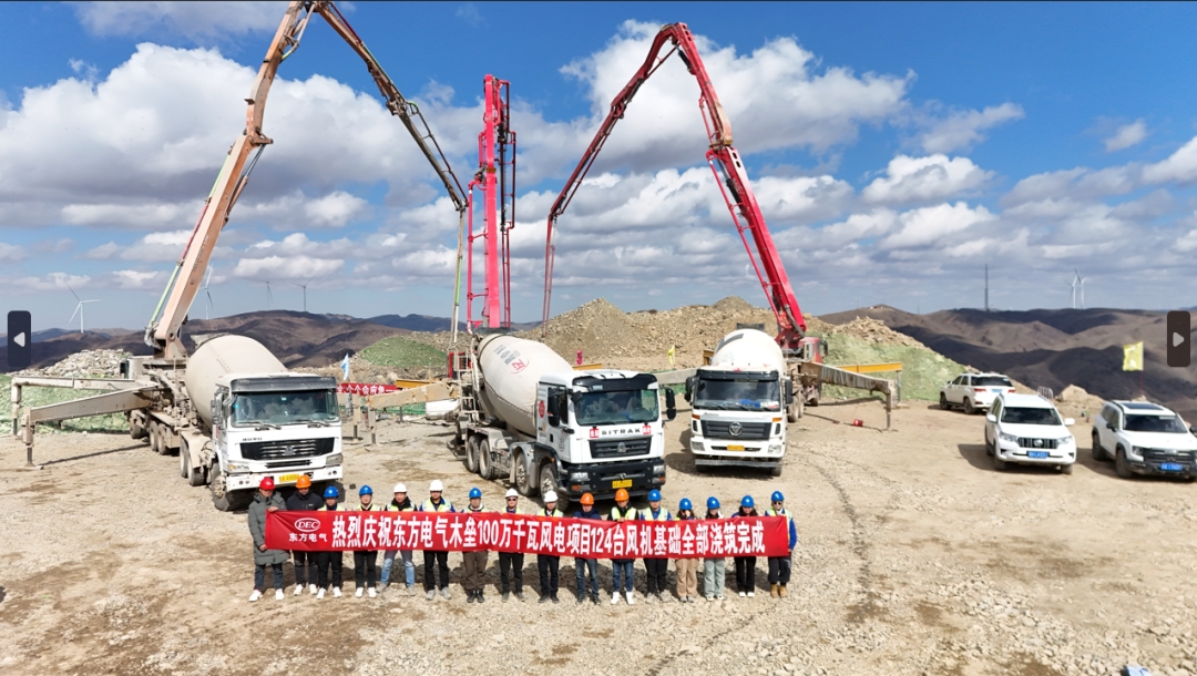 近日,隨著全場施工難度最大的E092風機基礎最后一方混凝土澆筑完畢,東方電氣木壘100萬千瓦風電項目完成124臺風機基礎澆筑,標志著項目土建工作全面完成,主體工程全面進入設備安裝沖刺階段,為年內建成奠定了堅實的基礎。