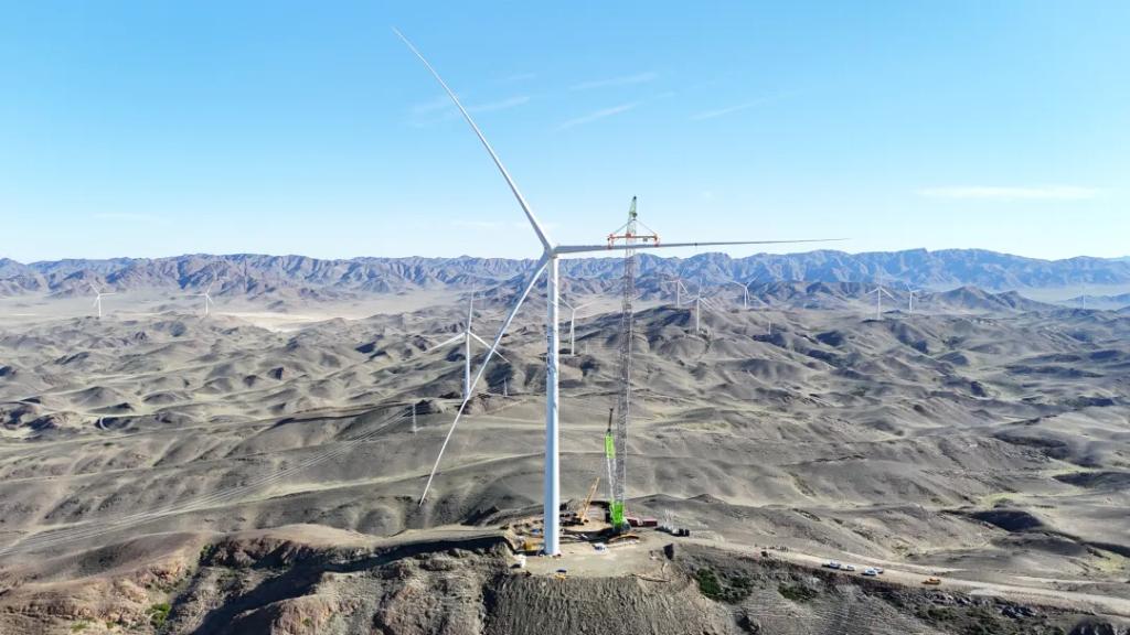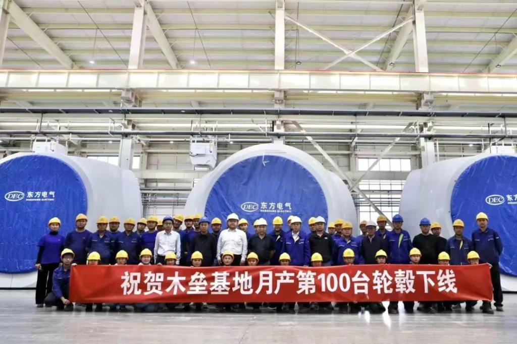 為保障項目順利交付,9月26日,東方風電新疆木壘基地月產第100臺風機輪轂順利下線,創造了東方風電生產基地單月最大產出紀錄。截至9月29日,該項目已完成40臺風機吊裝工作,完成率達32.2%;完成項目集電線路基礎開挖工作共計788基,完成率達94%;220千伏匯集站也全面進入設備安裝調試階段。