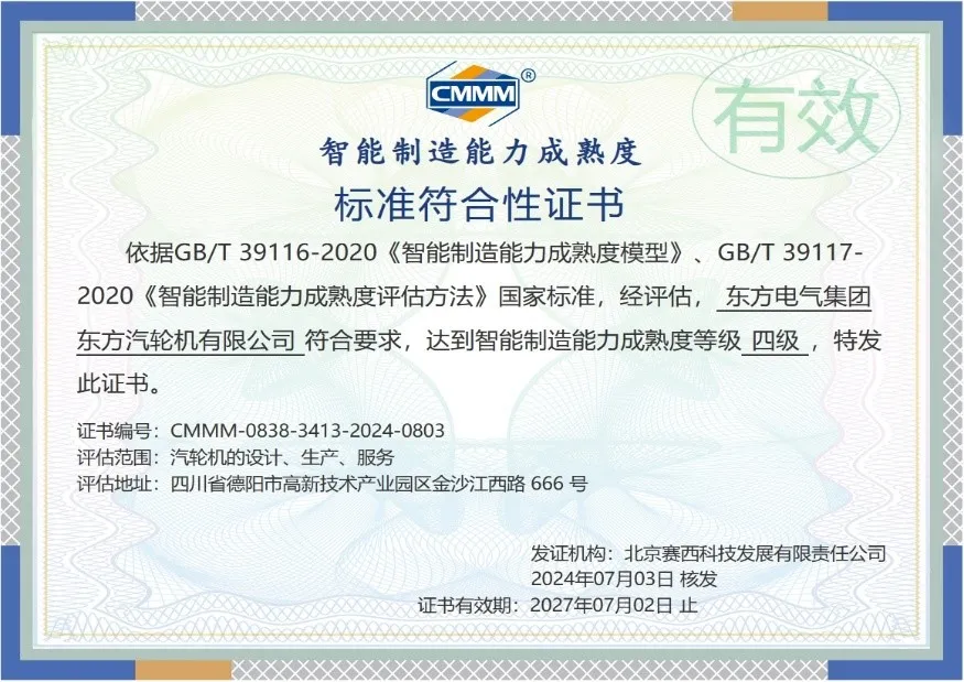 近日,東方電氣集團(tuán)所屬東方汽輪機(jī)成功通過工信部組織的數(shù)字化轉(zhuǎn)型成熟度四級(jí)現(xiàn)場評(píng)估(DTMM),這是繼今年5月通過智能制造能力成熟度四級(jí)評(píng)估之后又一里程碑。至此,東方汽輪機(jī)成為全國首批、行業(yè)首家達(dá)到智能制造成熟度與數(shù)字化轉(zhuǎn)型成熟度兩套國家標(biāo)準(zhǔn)體系四級(jí)認(rèn)證達(dá)標(biāo)企業(yè)。