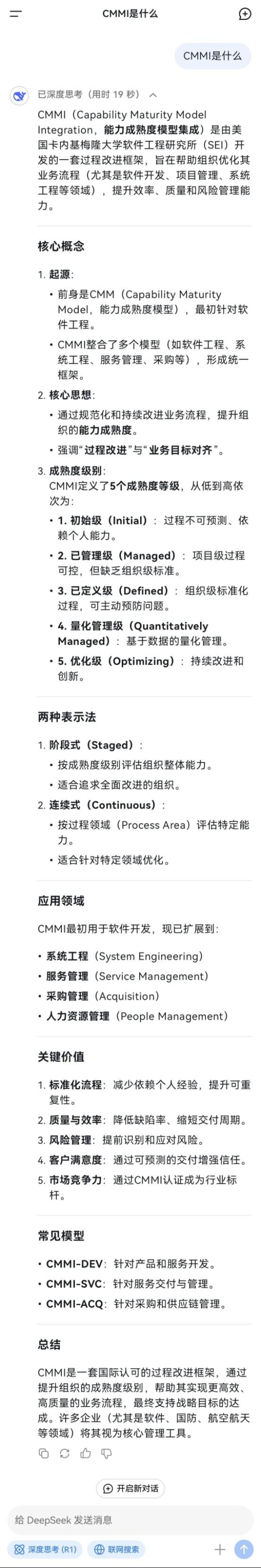 CMMI是啥?來看DeepSeek怎么說