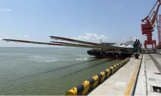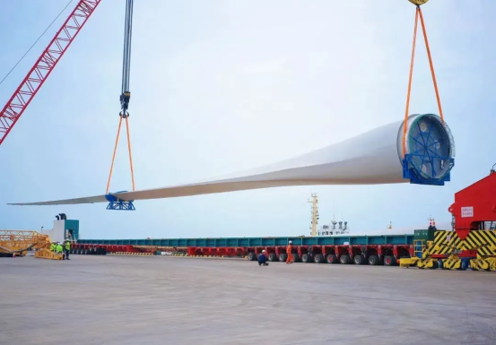 單支長度達153米的“葉片長龍”,長度堪比4架C919客機首尾相接,運輸難度極高。從工廠到港口的運輸路線如“障礙賽”,高壓線、橋梁、急彎層層阻隔,發運團隊提前半年實地勘測,多次復勘定制“分段式護送”方案。