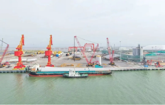 超500噸的機艙遠超港口常規起重能力。團隊打破傳統吊裝思維,提出“精準潮位+高精度滾裝”方案,機艙滾裝必須與潮汐展開“賽跑”,成員徹夜堅守港口,嚴陣以待,基于高精度潮汐模型,鎖定凌晨高平潮僅有的2小時窗口(潮高誤差嚴格控制在10厘米以內),以低于0.5千/小時的速度沿特制跳板移動,并借助波浪傳感器和動態平衡系統,在潮水漲落的瞬息之間實現安全“登陸”,攻克了超重型機艙港口裝卸作業行業技術難題。