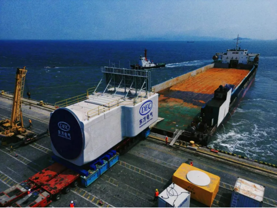 8月4日,由東方電氣集團所屬東方風電研制的全球單機容量最大26兆瓦海上風電機組核心部件——153米全球最長葉片和超500噸全球最重機艙,安全抵達山東東營廣利港。