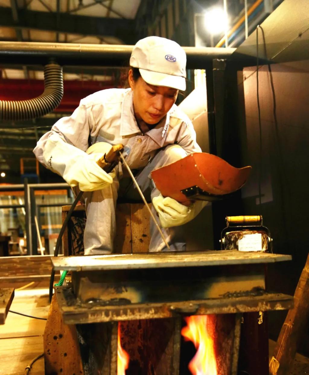 她手中的焊槍如同畫筆