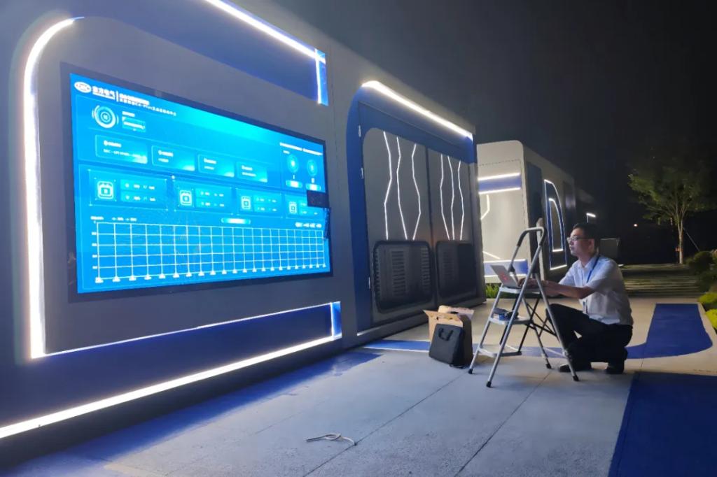團隊成員調試集團總部園區(qū)綠色低碳智慧系統(tǒng)