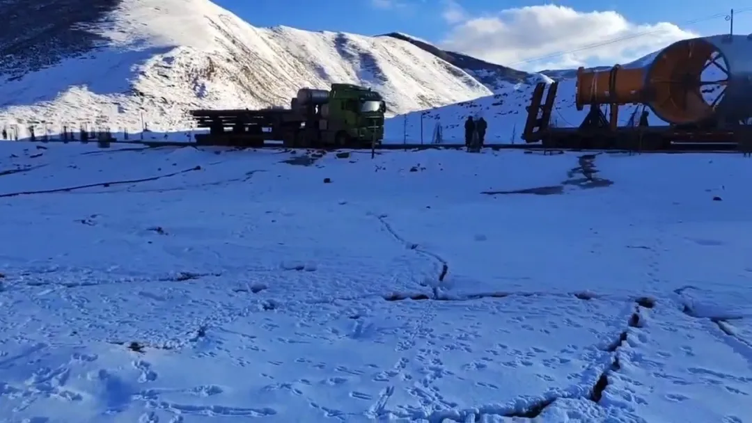 隨著海拔不斷升高,空氣越發稀薄,運輸人員開始出現不同程度的高原反應。雪白的東達山在陽光的照射下,晃得人睜不開眼。此時的雪域高原雄渾壯美,然而大家并沒有心情駐足欣賞,心中只有一個想法:盡快安全到達目的地。
