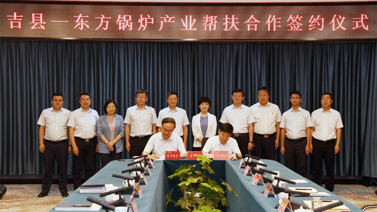 在俞培根、李忠軍與吉縣縣委、縣政府領導安娜、尚立春、陳鋒等共同見證下,東方鍋爐黨委書記、董事長林光平與吉縣縣委常委、常務副縣長龐大懿代表雙方簽署產業幫扶合作協議。雙方將立足吉縣資源稟賦,充分發揮東方電氣自身產業優勢,助推吉縣打造黃河流域綠色轉型新樣板,為吉縣鄉村振興繪就新圖景。