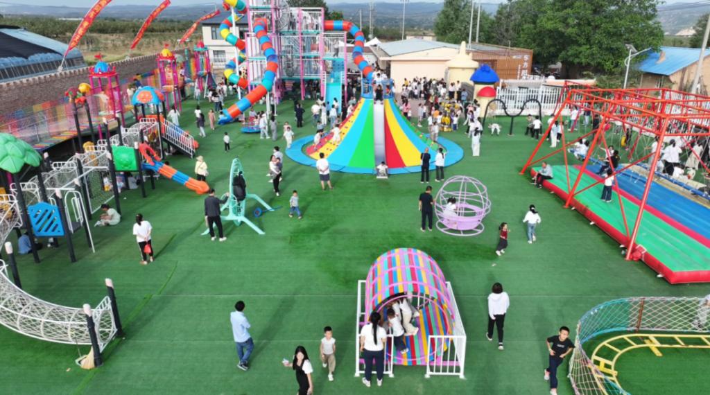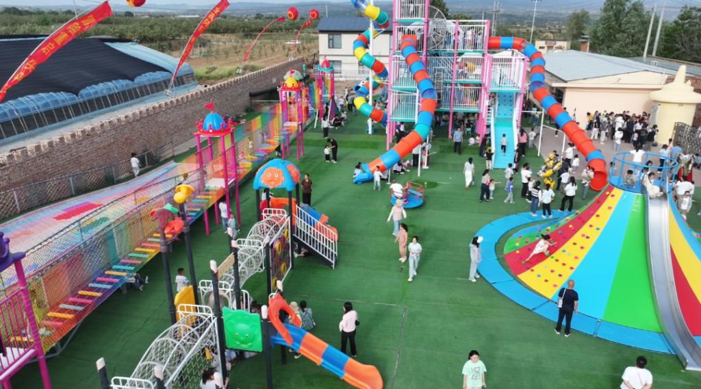 2021年,東方鍋爐聚焦上東村“城郊型鄉村”獨特優勢,精準擘畫出“一軸三區九組團”的農文旅融合發展藍圖:以鄉村振興為軸心,打造親子體驗、樂耕田園、上東鄉愁三大特色片區,布局兒童游樂、農業采摘、休閑觀光等九大核心項目,為上東村量身定制可持續發展路徑。錨定目標真抓實干,上東藍圖照進現實。東方鍋爐陸續投入幫扶資金,支持上東村建成吉縣首個戶外大型兒童樂園,彩虹滑道、蹦蹦云等設施成為縣域“網紅打卡地”。以兒童樂園為引擎,星空露營基地、生態采摘園、萌寵互動區等業態相繼落地,逐步形成“吃、住、游、購、娛”全鏈條產業矩陣。上東村實現了華麗蛻變,2022年,入選市級鄉村振興示范村;2023年,獲評省級特色產業幫扶基地;村集體收入連續四年突破百萬元,真正實現“小樂園撬動大產業”。