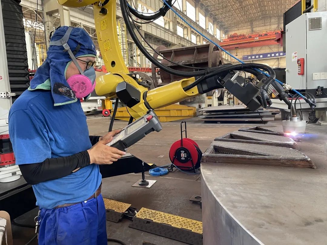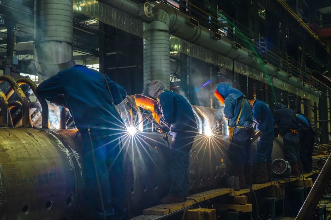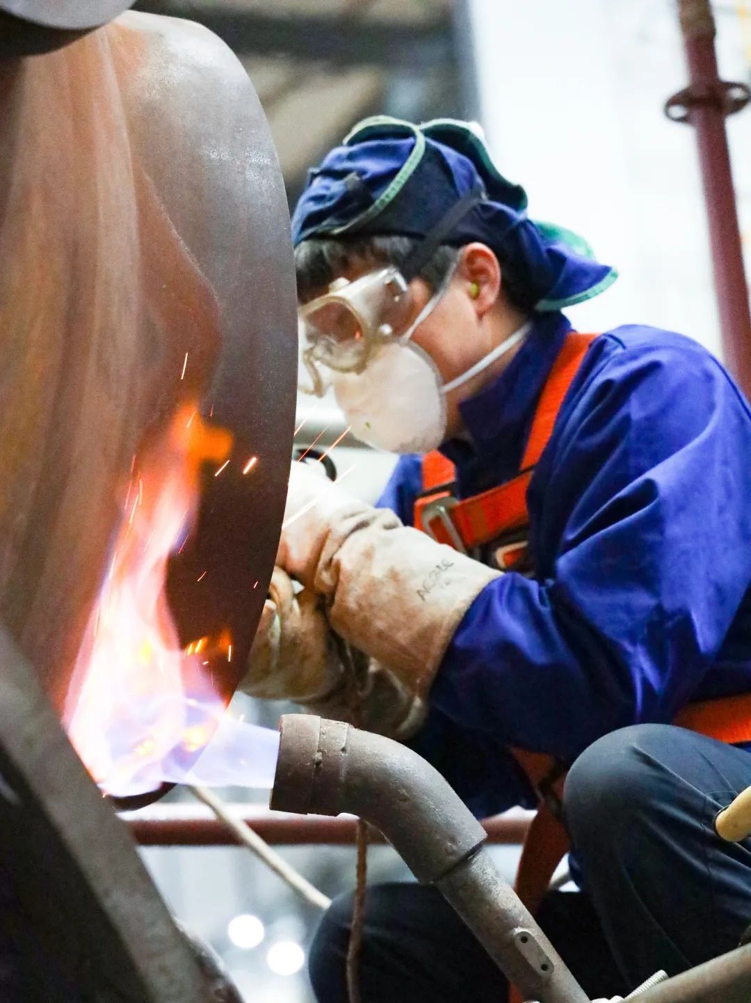 ◆東方重機生產制造部職工正在焊接重大項目產品人孔密封面