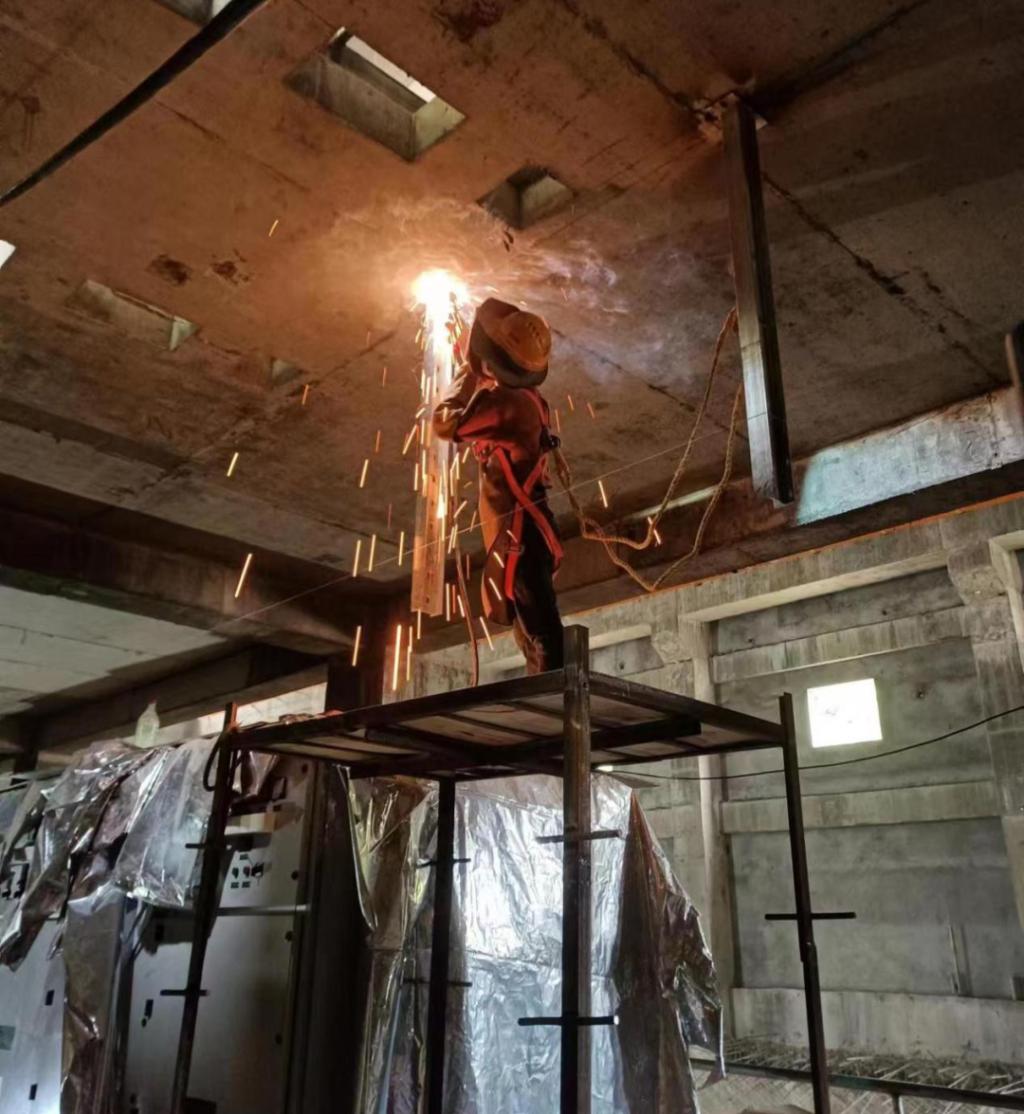 ◆東方國際尼泊爾山澗水電項目職工正在進行電纜橋架安裝工作