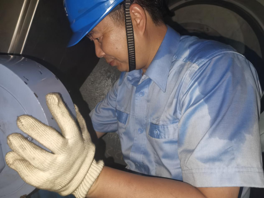 ◆東方鍋爐重容車間職工在對汽包筒身內壁環縫批磨