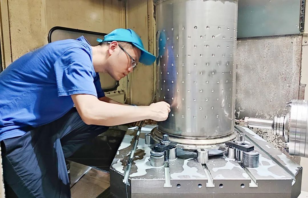 ◆東方汽輪機金工分廠職工正在對G50德陽項目燃燒器內筒進行銑削加工