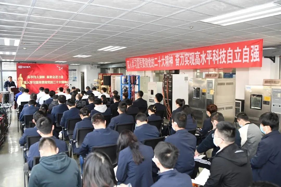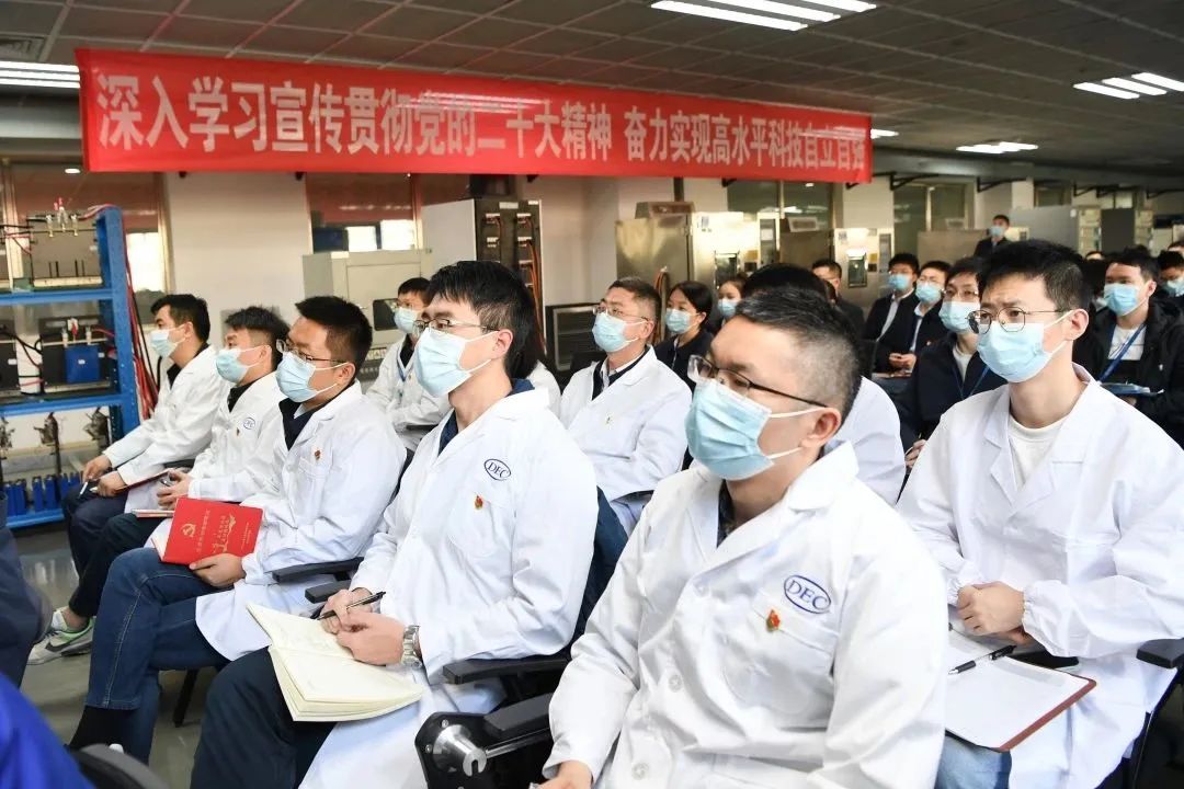 為引導全集團廣大干部職工切實把思想和行動統一到黨的二十大精神上來,根據東方電氣集團黨組統一部署,11月22日,集團公司“高舉偉大旗幟 凝聚奮進力量”黨的二十大精神宣講隊首場宣講報告會在東方研究院新能源電池測試實驗室舉行,用“行走的課堂”講述“我們身邊”拼搏奮進爭先的鮮活故事,激勵科研工作者以實干搶抓創新先機,為加快實現高水平科技自立自強貢獻“東方”力量。