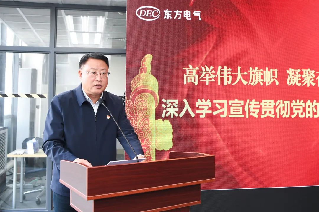 集團公司黨組副書記、董事宋致遠在講話中指出,新時代十年,在以習近平同志為核心的黨中央堅強領導下、在習近平新時代中國特色社會主義思想指引下,東方電氣集團全體黨員干部職工堅定不移聽黨話、矢志不渝跟黨走,在推進科技自立自強、加快轉變經濟增長方式上爭做排頭兵,有力服務了黨和國家工作大局。舉行系列宣講報告會,旨在推動黨的二十大精神學習宣傳貫徹在全集團走深走實,以榜樣力量高揚“東汽精神”鮮艷旗幟、鍛造“同·創”文化價值內核,為加快建設世界一流企業竭誠盡智。