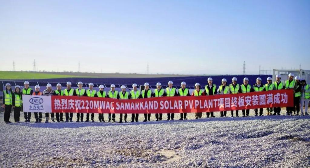 本網(wǎng)訊 3月30日,由東方電氣集團所屬企業(yè)東方國際總承包的烏茲別克斯坦撒馬爾罕光伏項目舉行最終光伏板安裝儀式。四川省副省長左永祥,東方電氣集團黨組成員、副總經(jīng)理李忠軍出席終板安裝儀式。