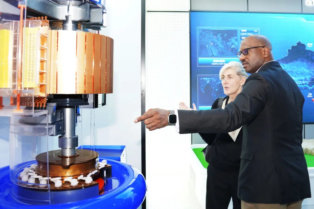 外賓們一行參觀了東方電氣科技展示廳,深入了解東方電氣集團“六電并舉、六業協同”的產業格局和積極共建“一帶一路”的實踐與成果。外賓們還參觀了東方電氣氫能公交車、冷鏈車、廂式貨車、重型卡車,并紛紛登車體驗。