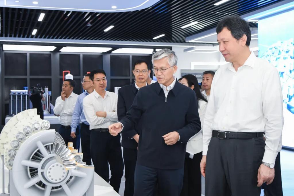 在張彥軍的陪同下,靳國衛一行參觀了東方電氣科技展示廳,深入了解了東方電氣集團的發展歷程、產業格局、裝備制造、綠色低碳發展等情況。