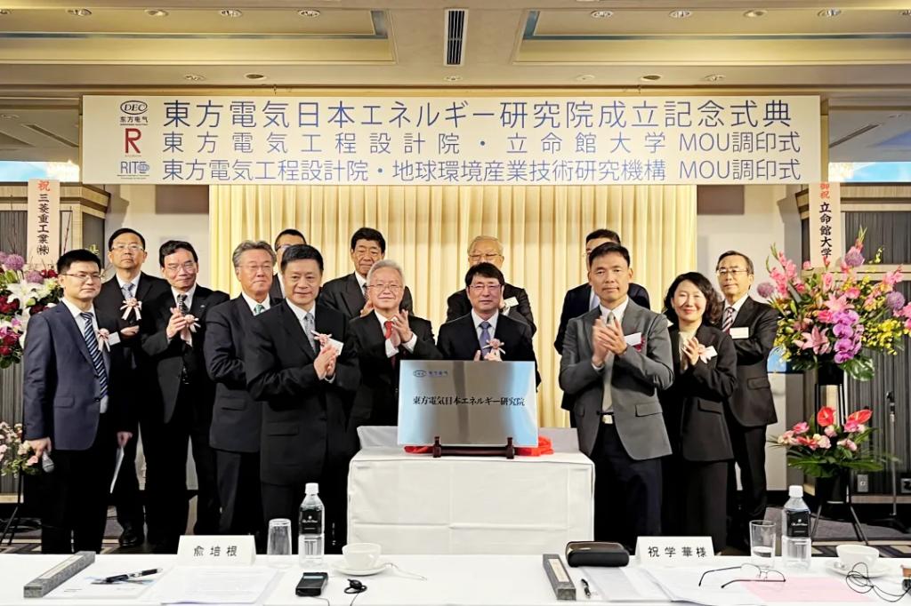 儀式上,東方電氣股份有限公司副總裁李建華與立命館大學(xué)、地球環(huán)境產(chǎn)業(yè)技術(shù)研究機(jī)構(gòu)代表分別簽署合作備忘錄。