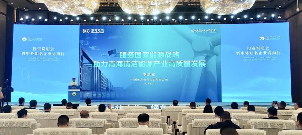李忠軍作為央企簽約代表在青洽會投資說明會上致辭。
