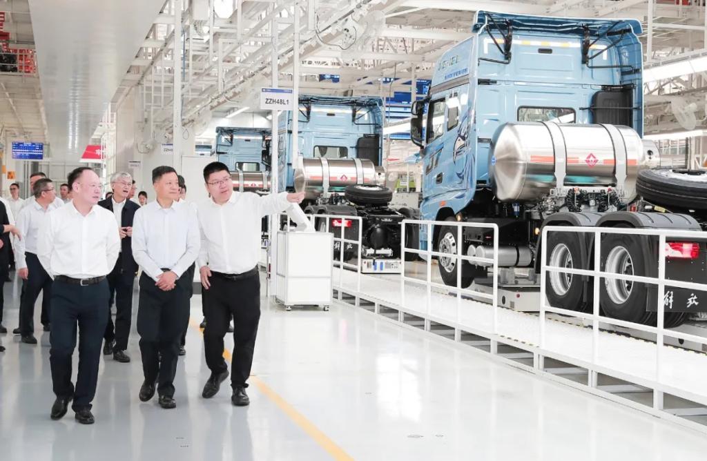 訪問期間,俞培根、張彥軍一行參觀了一汽創新成果匯報展、中國一汽數智化轉型之道展、一汽解放創領館、一汽解放J7智能裝配車間。
