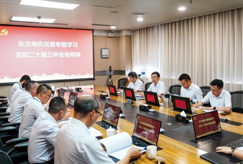7月24日,東方電機黨委召開專題會議,深入學習黨的二十屆三中全會精神,研究部署貫徹落實工作。東方電機黨委副書記、總經理楊永主持專題學習,在家領導班子成員參加專題學習。
