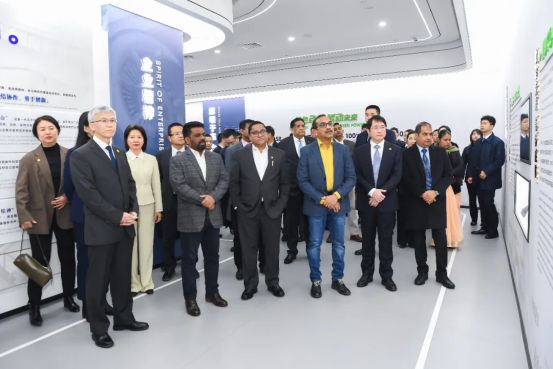 迪薩納亞克一行參觀了東方電氣科技展示廳,詳細了解東方電氣集團發展歷程、綠色裝備制造、科技創新成果、高質量共建“一帶一路”等方面情況。參觀過程中,迪薩納亞克對東方電氣集團風電、水電等新能源科技和燃氣輪機技術表現出濃厚興趣,并稱贊東方電氣集團為促進斯里蘭卡當地經濟發展作出的貢獻。他表示,斯里蘭卡一直堅持推動高質量共建“一帶一路”,促進本國可再生能源產業的發展和升級,希望東方電氣集團積極參與斯里蘭卡能源項目開發和建設。