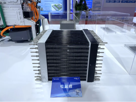 此次展出的東方電氣兆瓦級PEM水電解制氫電解槽,額定產氫壓力超過3兆帕,產氫額定速率最高可以達到300標方,安全性高,運行負荷范圍可達5-150%。